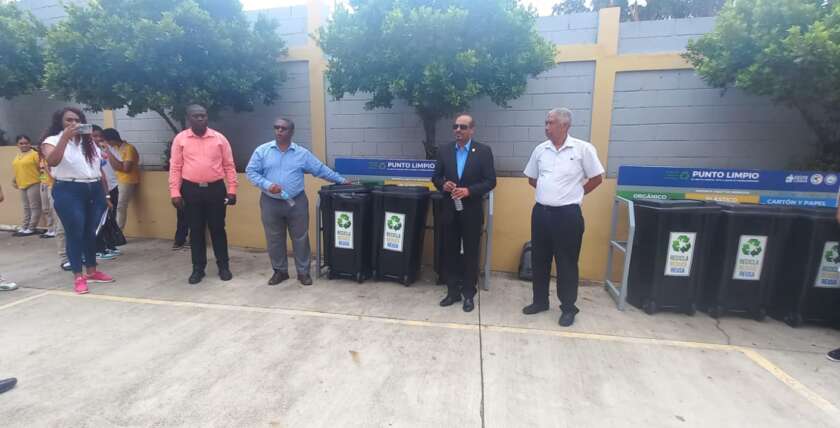 Acto de instalación de puntos limpios para el reciclaje y la concienciación sobre la importancia de la regla de las 3Rs en los centros educativos Politécnico Plinio Martínez, San Francisco de Asís y Gabina De León de Santiago Oeste.…