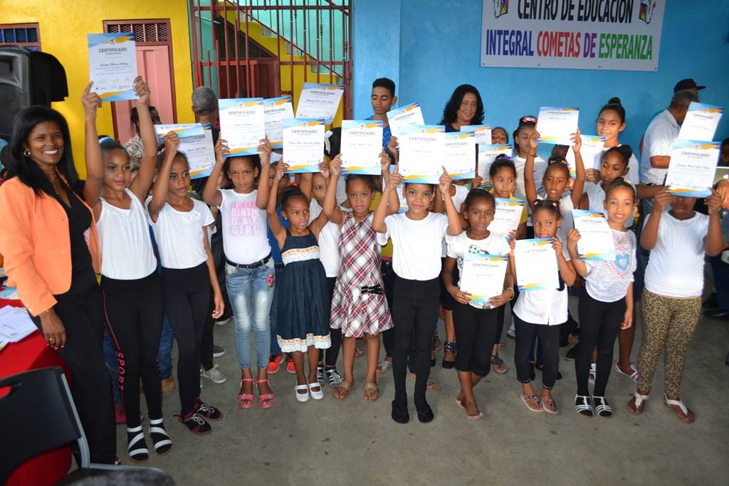 El pasado jueves, se hizo entrega a los niños y niñas participantes en la escuela de arte y tiempo libre, de los certificados y diplomas acreditativos de su participación en las actividades del centro. Unos 152 niños y niñas participantes de las clases de teatro, danza, dibujo y música que imparte la Escuela de Arte y Tiempo Libre “Mauro Lorenzo” del Barrio Santa Lucía, Santiago, recibieron sus certificados en la tarde del jueves 21 de junio de 2018.